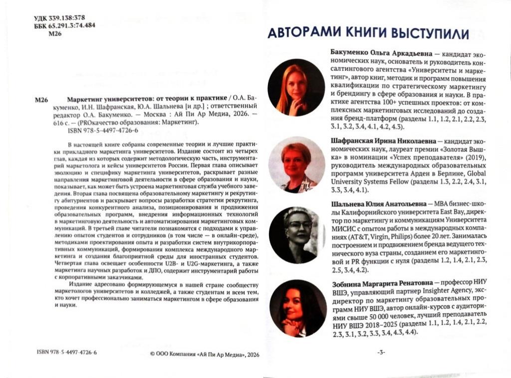 Предлагаем ознакомиться с новой книгой, инструктивно-методическим изданием, «Маркетинг университетов», подаренной Научной библиотеке директором, Ткаченко Татьяной Петровной. Данное издание было представлено на Всероссийском форуме для лидеров и экспертов в сфере образования – FORUM.EDU.2025 (16-18.10.2025), в котором принимала участие директор Научной библиотеки.