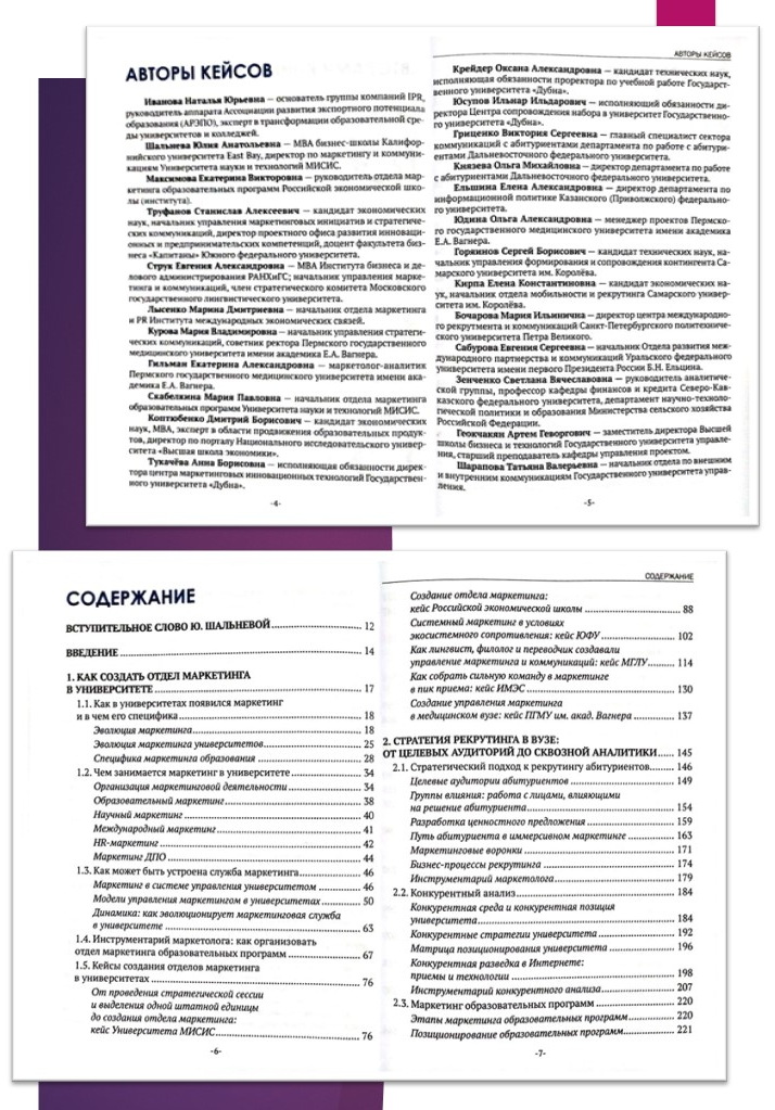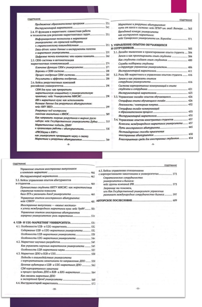 В настоящей книге собраны современные теории и лучшие практики прикладного маркетинга университетов. Издание состоит из четырех глав, каждая из которых содержит методологическую часть, инструментарий маркетолога и кейсы университетов России. Первая глава описывает эволюцию и специфику маркетинга университетов, раскрывает разные направления маркетинговой деятельности в сфере образования и науки, показывает, как может быть устроена маркетинговая служба учебного заведения. Вторая глава посвящена образовательному маркетингу и рекрутингу абитуриентов и раскрывает вопросы разработки стратегии рекрутинга, проведения конкурентного анализа, позиционирования и продвижения образовательных программ, внедрения информационных технологий в маркетинговую деятельность и автоматизирования маркетинговых коммуникаций. В третьей главе читатели познакомятся с подходами к управлению опытом студентов и сотрудников (в том числе — в онлайн-среде), методиками проектирования опыта и разработки систем внутрикорпоративных коммуникаций, формирования комплекса международного маркетинга и создания благоприятной среды для иностранных студентов. Четвертая глава освещает особенности U2B- и U2G-маркетинга, а также маркетинга научных разработок и ДПО, содержит инструментарий работы с корпоративными заказчиками. Издание адресовано формирующемуся в нашей стране сообществу маркетологов университетов и колледжей, а также студентам и всем тем, кто хочет профессионально заниматься маркетингом в сфере образования и науки.