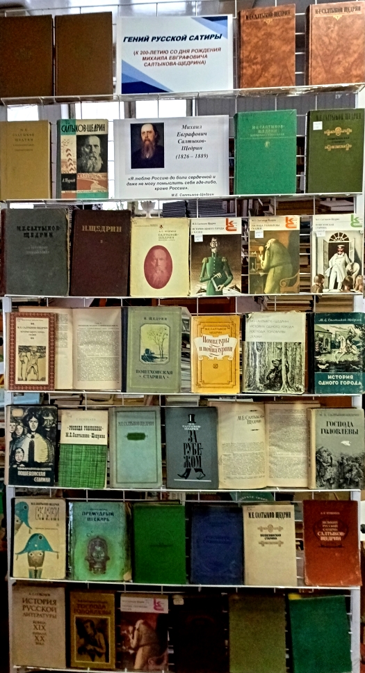 К юбилею писателя Научной библиотекой подготовлена книжная выставка «Гений русской сатиры», на которой представлены самые известные произведения М.Е. Салтыкова-Щедрина, а также критические статьи, биографические исследования, воспоминания современников, которые помогут лучше понять творчество автора. Особую ценность представляют произведения писателя из фонда редкой книги Научной библиотеки.