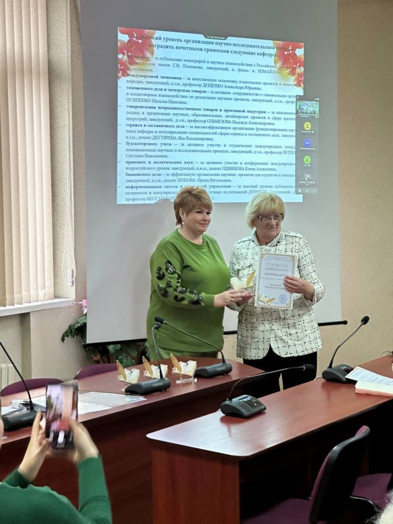 По итогам научно-исследовательской работы за 2025 г. коллектив Научной библиотеки награжден Грамотой ФГБОУ ВО «ДОННУЭТ».